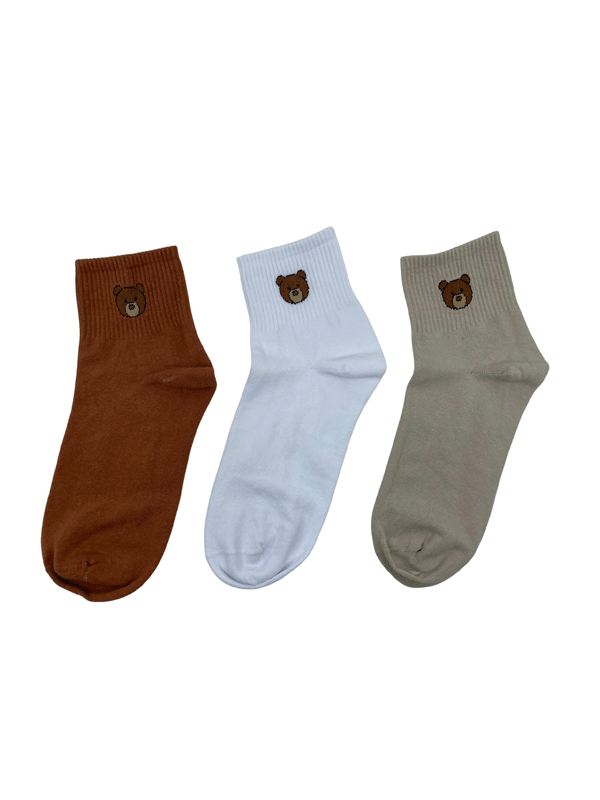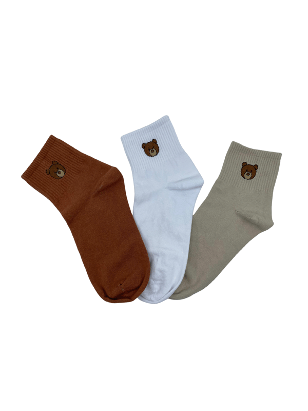 BAYAN ÇORAP - 3'LÜ SEVİMLİ AYICIK DESENLİ ÇORAP SETİ