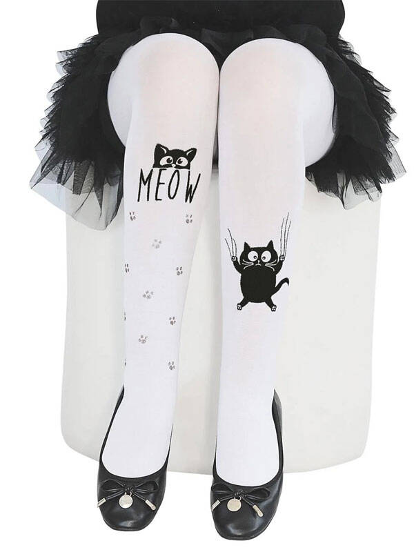 - İç giyim koleksiyonunuzda şıklığı ve konforu bir arada sunan kız çocuk kedi baskılı simli külotlu çorap, minik ayaklarınızı sıcak tutar ve rahat ettirir