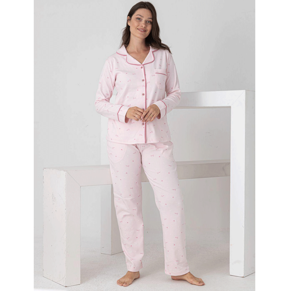 %100 Pamuklu Uzun Kollu Gömlek Model Bayan Pijama Takımı