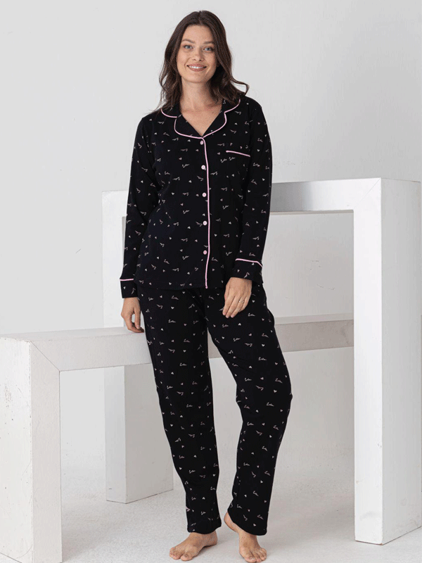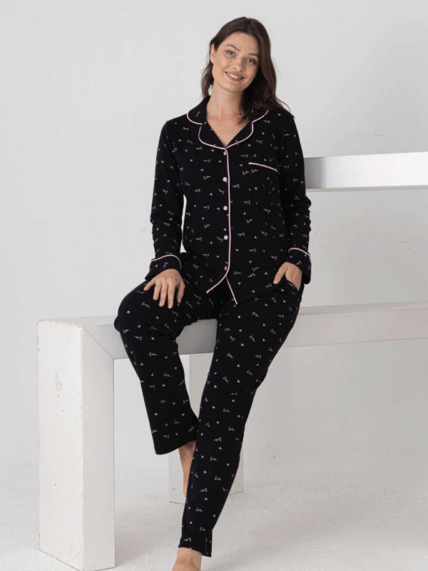 Rahatlığın ve şıklığın buluştuğu bu özel pijama takımı, ev giyiminize zarif bir dokunuş katıyor. %100 pamuk kumaştan üretilen bu takım, cildinize dost yapısı sayesinde nefes alır, terletmez ve maksimum konfor sağlar.